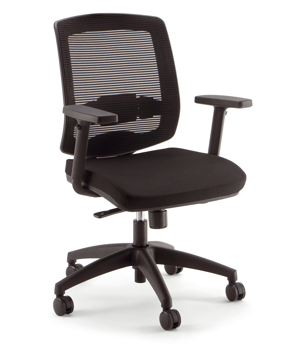 anti-shock. Supporto lombare regolabile. Braccioli regolabili in altezza. Schienale in rete nera