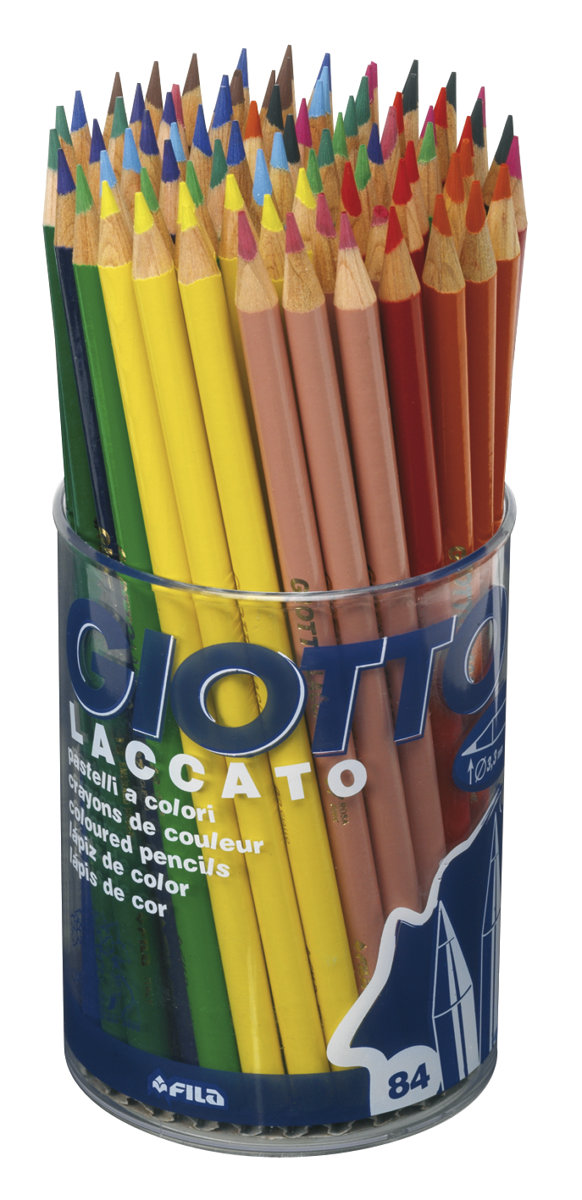Pratica confezione di 84 matite colorate a sezione tonda con fusto verniciato laccato nel colore della mina