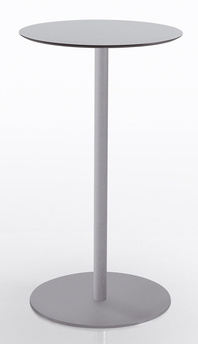 Tavolino con piano in laminato stratificato HPL colore grigio. Colonna e