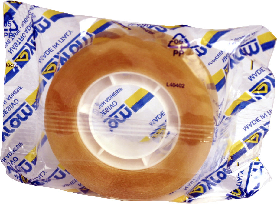 Supporto in polipropilene. Adesivo in gomma resina. Non ingiallisce. Trasparente. Per uso professionale