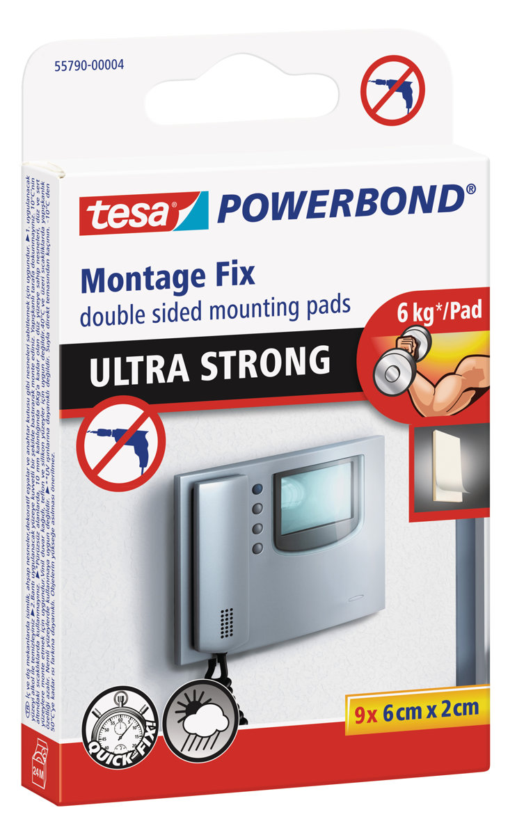 Nastro biadesivo a tenuta ultra forte. Ideale per usi interni ed esterni. Tenuta fino a 10 Kg per 10 cm di nastro. Presa sicura su piastrelle, legno e sulla maggior parte delle superfici plastiche.