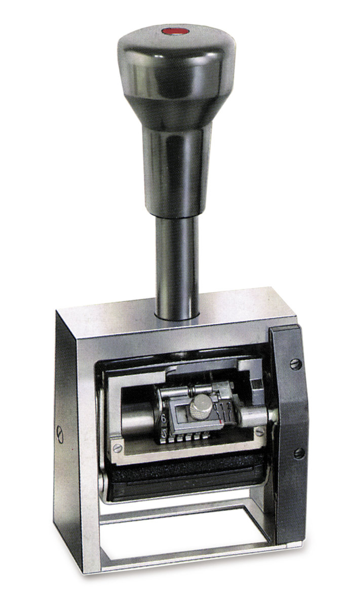 Numeratore automatico autoinchiostrante. Montatura e ruote in metallo.