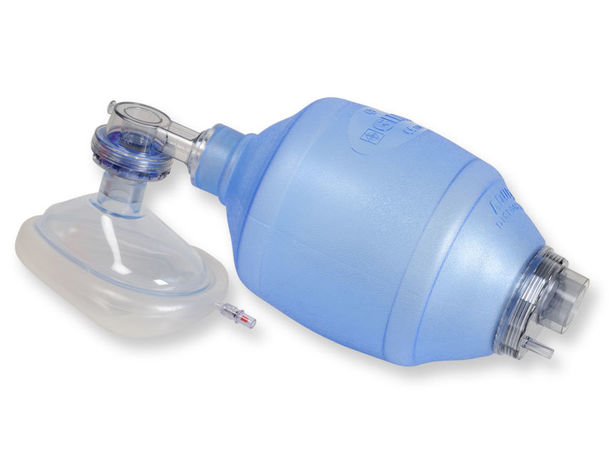 Palloni rianimazione con mascherina monouso, completi di valvola con membrana antiriflusso e adattatore per valvola PEEP