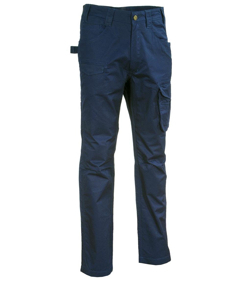 DESCRIZIONE: 2 ampie tasche anteriori, cavallo rinforzato, doppia tasca posteriore con pattina, elastico in vita, taglio ergonomico, tasca laterale, tasca porta monete, tasca portametro, taschino frontale sulla gamba destra, zip YKK®.