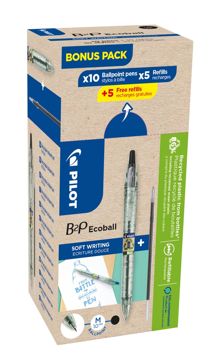 Penna B2P Ecoball, a Sfera, Punta Media, Vari Colori