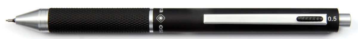 Penna multifunzione a sfera con inchiostro nero e rosso, portamine mm 0,5 ed evidenziatore inchiostro arancio fluo