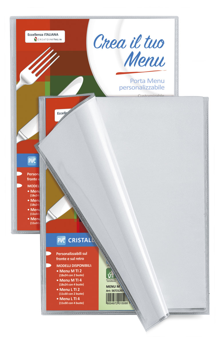Porta Menu, Personalizzabile, Trasparente, F.to cm 18x24, in PVC