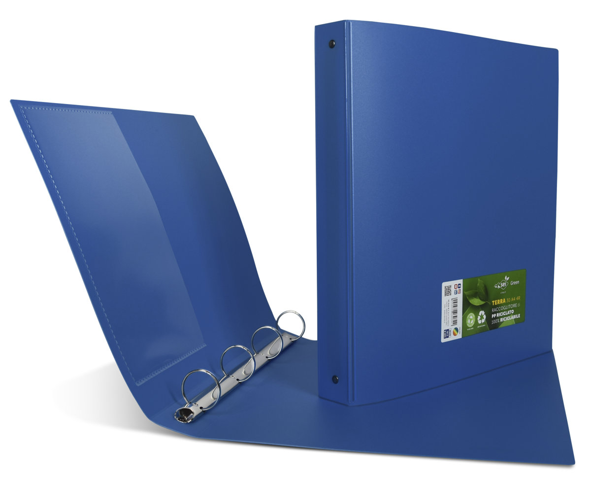 Portalistino Terra Formato A4 con Quattro Anelli Tondi di Diametro cm 3, Vari colori