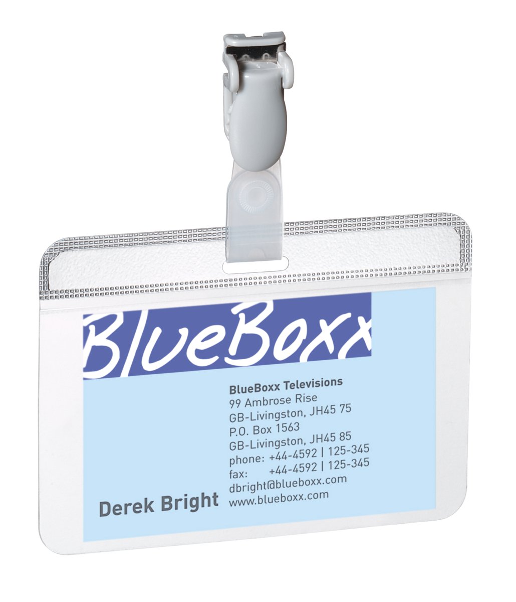Portanome plastificabile a freddo dotato di clip in plastica orientabile