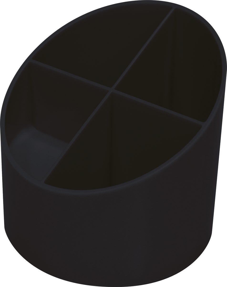 3 larghi scomparti per penne e 1 piccolo per accessori tipo fermagli, puntine, ecc.