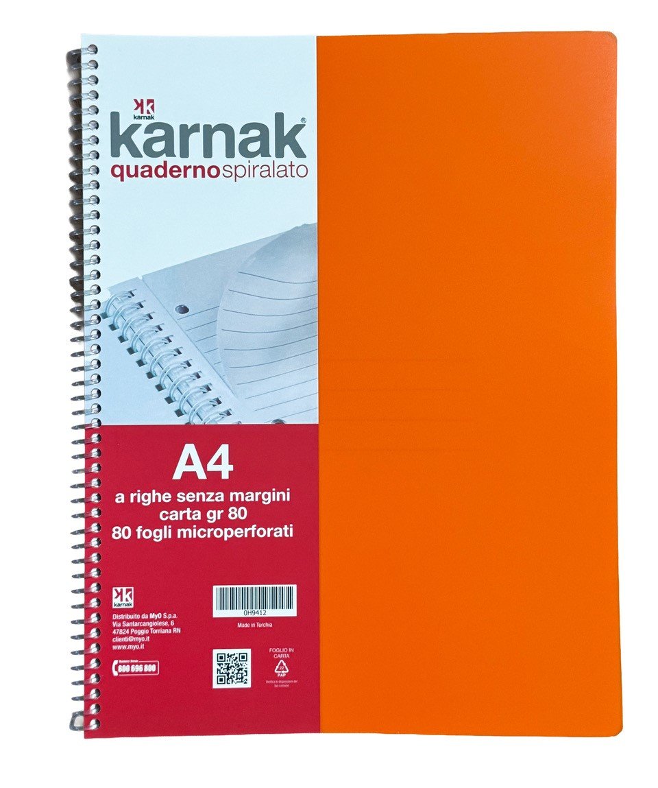 Quaderni Karnak Spiralati A4 con fori a Righe e a Quadretti 80 Fogli