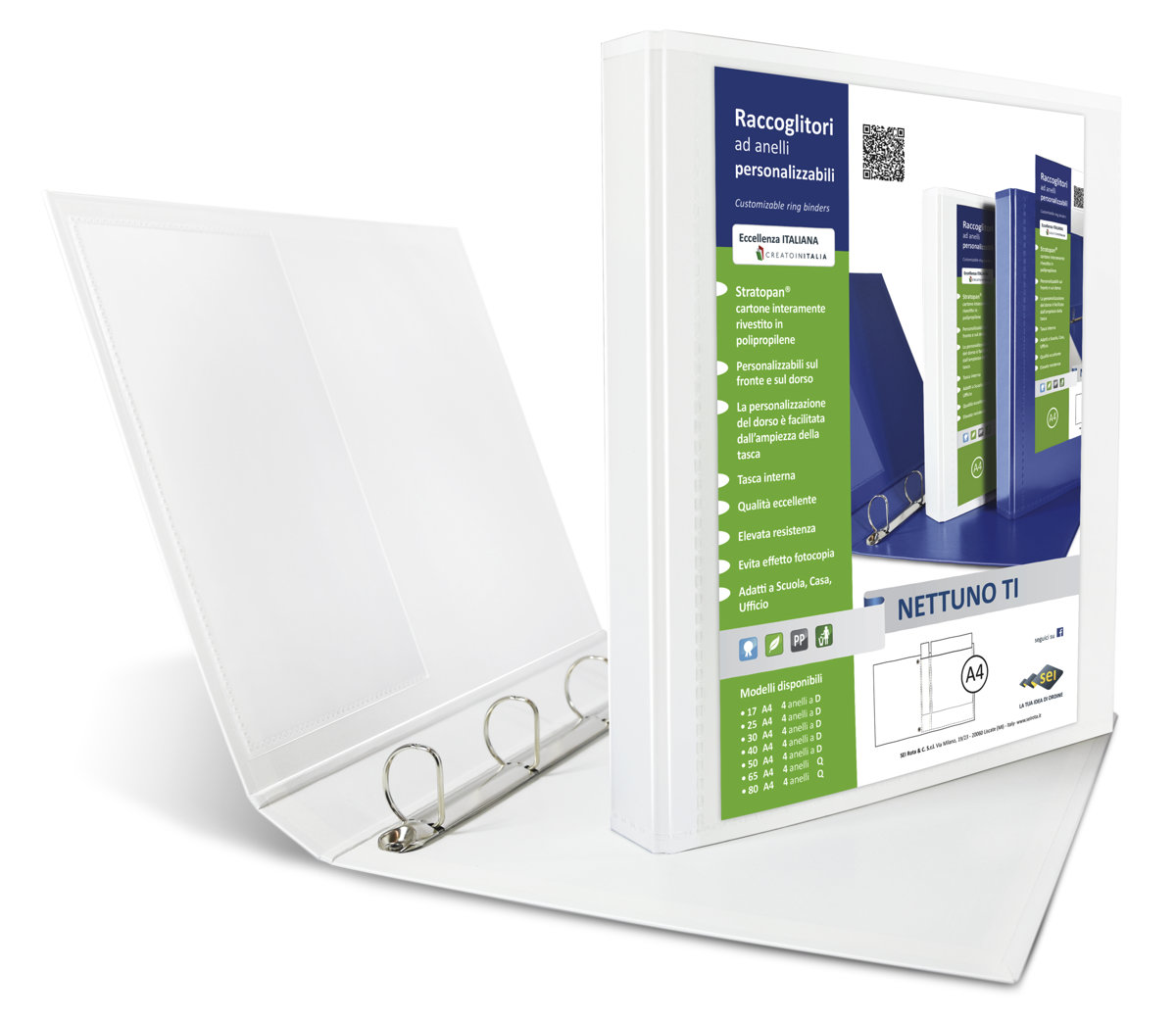 con meccanismi a 4 anelli (a D e Quadri). Dotati di tasche trasparenti sul