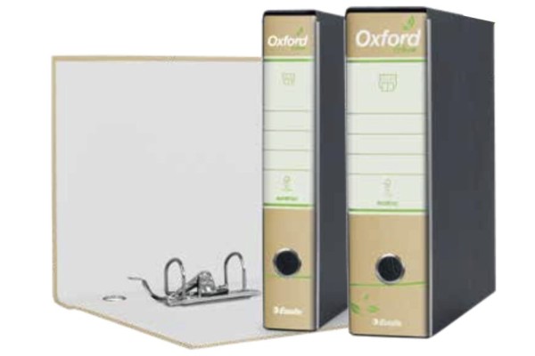 Raccoglitore Oxford Green, 100% Riciclato, a Leva a 2 Anelli, Formato Protocollo o Commerciale, Dorso cm 8 o cm 5