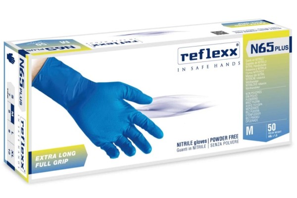 Guanti Monouso In Nitrile Senza Polvere Full Grip Blu N65 Plus