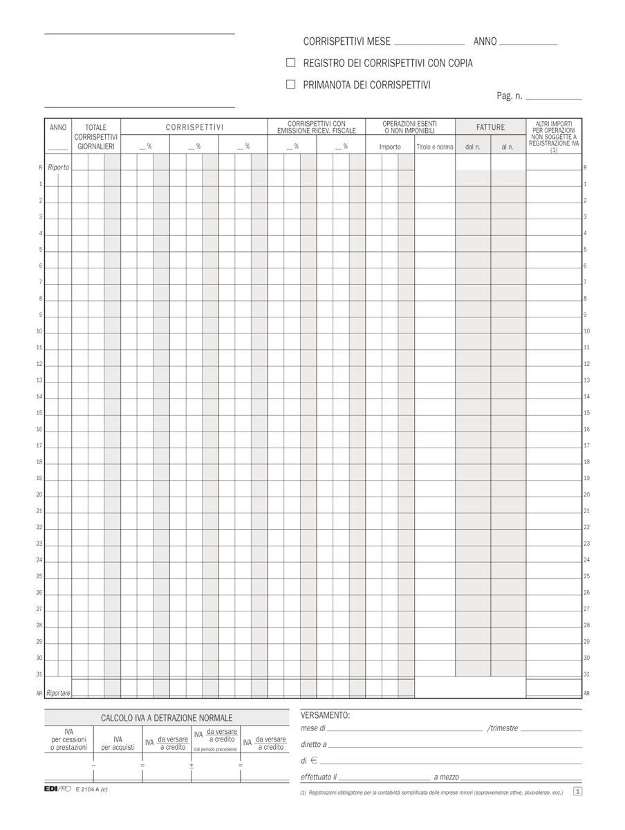 Registro Prima Nota IVA Corrispettivi EX10002280