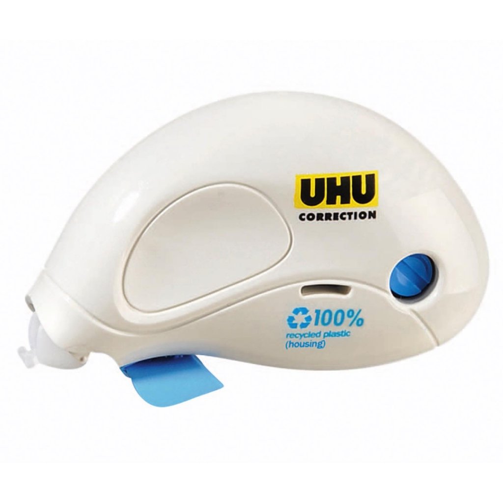 Correttore a nastro dalla forma ergonomica. Dotato di rotellina riavvolgi