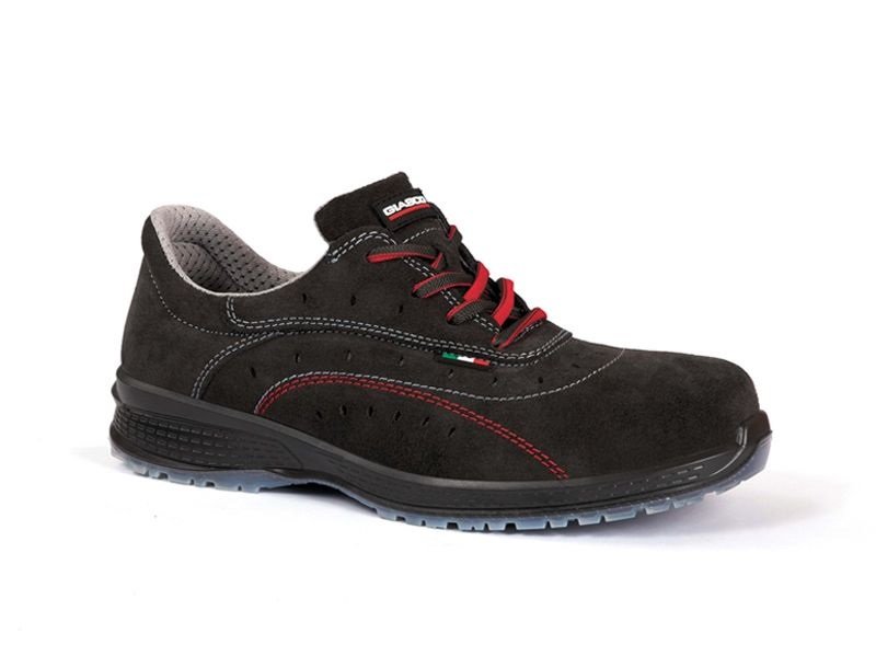 Scarpa bassa forata, in pelle groppone scamosciato spessore 1,8-2,0 mm.