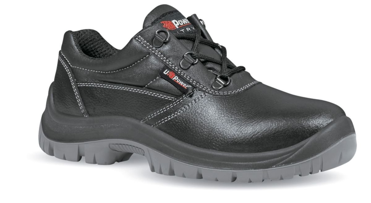 Scarpe antinfortunistiche basse sicure della linea Entry U Power, con tomaia in pelle stampata, idrorepellente, puntale in acciaio, antiperforazione, antiscivolo, lamina in acciaio ergonomica e suola PU/PU, S3 SRC