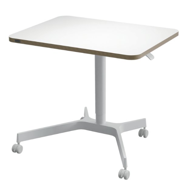 Scrivania Compatta Sit Stand con Ruote, Regolazione in Altezza Pneumatica, Salvaspazio, Bianca