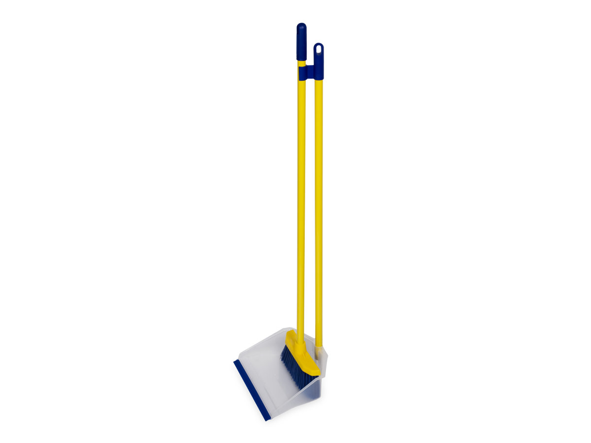 Set pulizia con scopa e paletta con lato zigrinato per rimuovere lo sporco