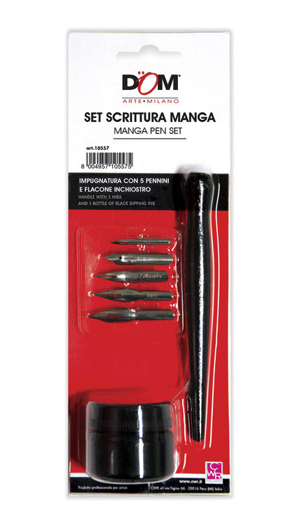 Set scrittura manga composto da portapennino, 5 pennini ed inchiostro
