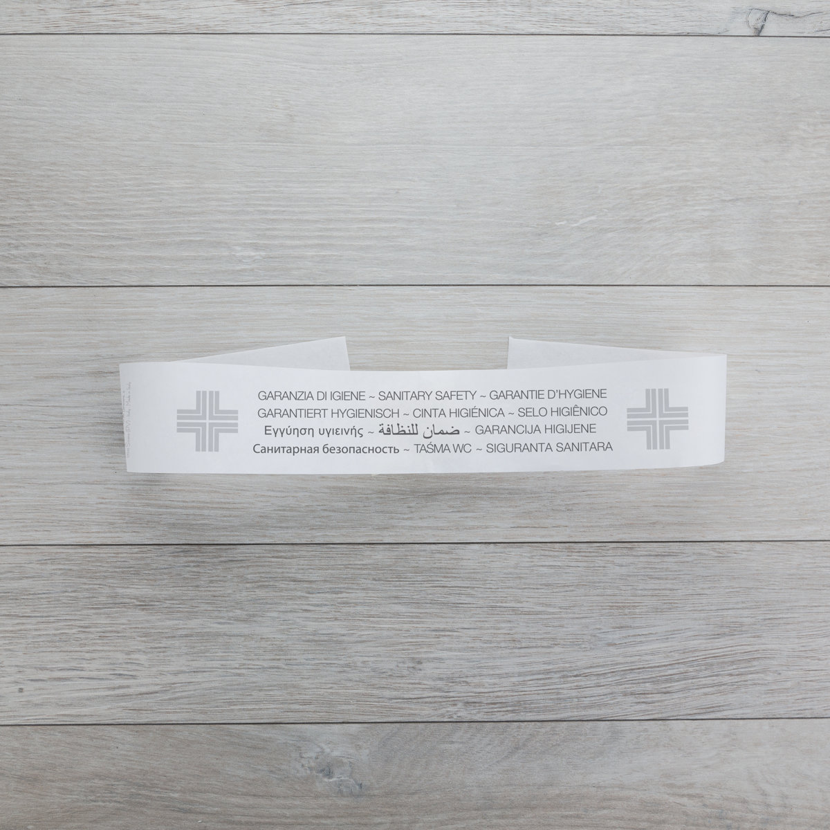 Fascia in carta bianca utilizzabile come sigillo a garanzia di igiene del wc