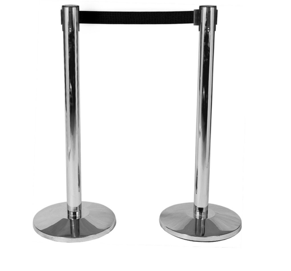 Colonnina in acciaio inox con nastro retrattile di colore nero
