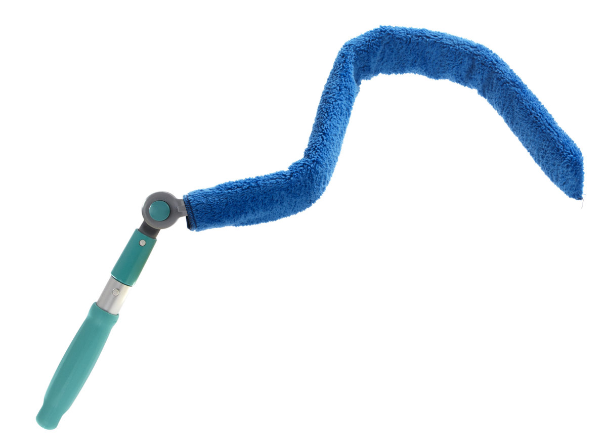 Spolverino con impugnatura ergonomica e telaio superiore modellabile manualmente, con snodo inclinabile fino a 270°