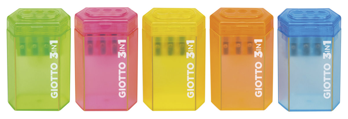 Temperamatite per matite e pastelli di ogni grandezza, grazie ai suoi tre fori di piccola, media e grande dimensione