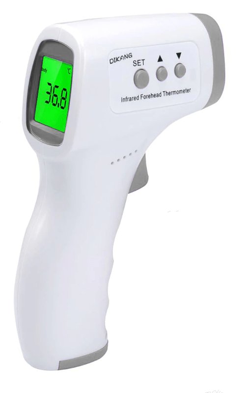Dispositivo di misurazione della temperatura corporea ad infrarossi senza contatto • spegnimento automatico in caso di inutilizzo • possibilità di misurare la temperatura delle superfici • display lcd • funzionamento a batteria con 2 pile mini stilo AAA
