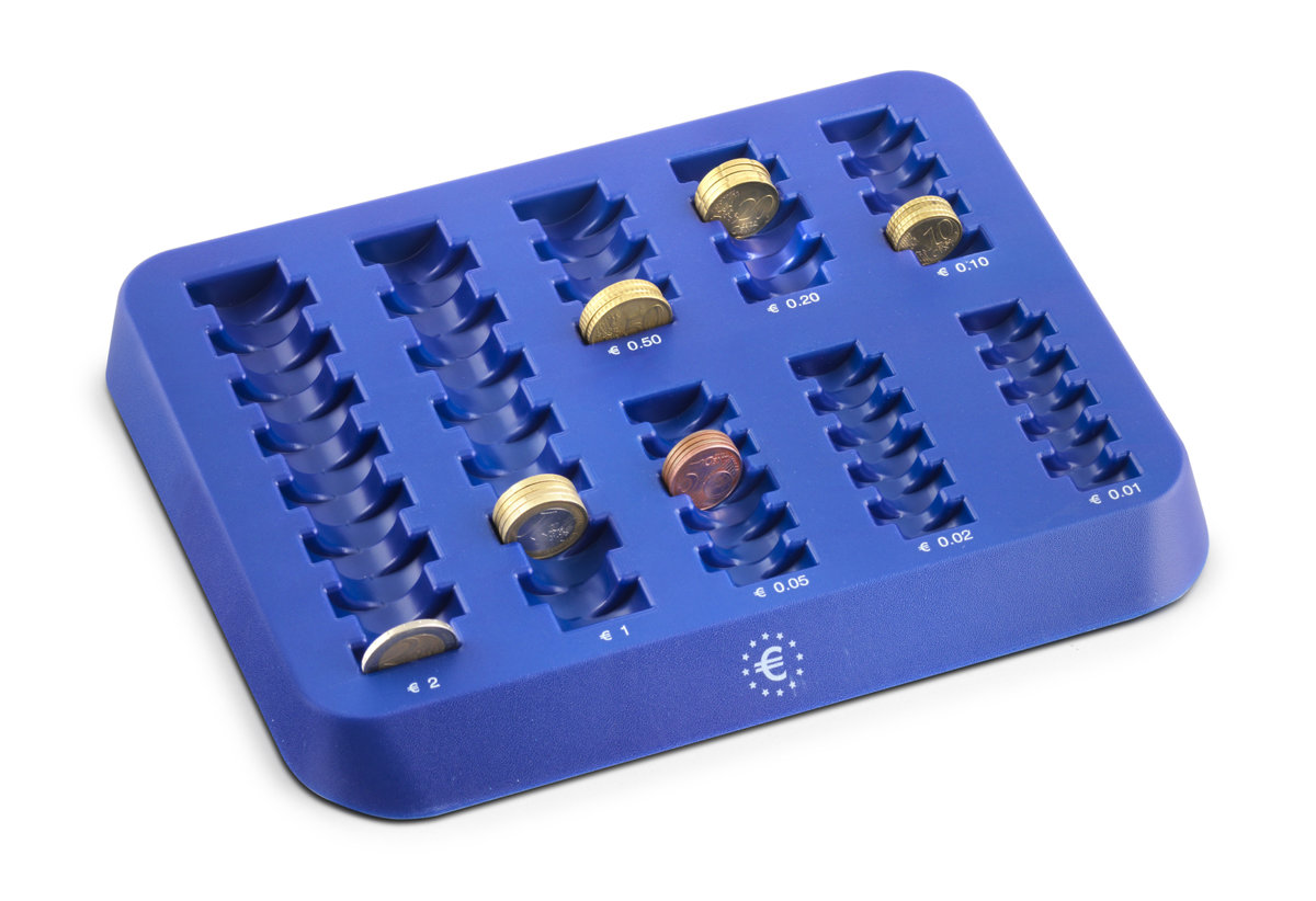 8 scomparti per monete da euro 0,01 - 0,02 - 0,05 - 0,10 - 0,20 - 0,50 - 1,00 - 2,00