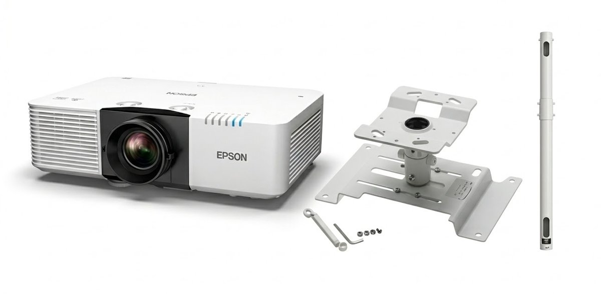 • Fornito con staffa originale Epson ELPMB22 per montaggio a soffitto e prolunga regolabile ELPFP13 (668–918 mm) per installazioni professionali e flessibili.