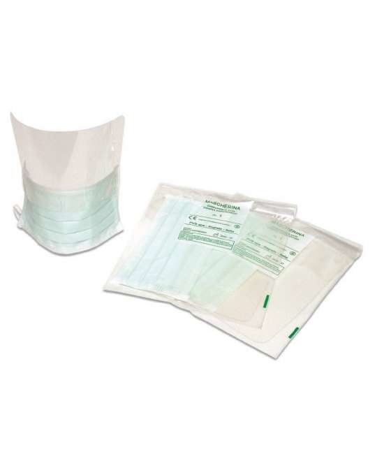Mascherina chirurgica 3 strati con visiera paraschizzi ed elastici