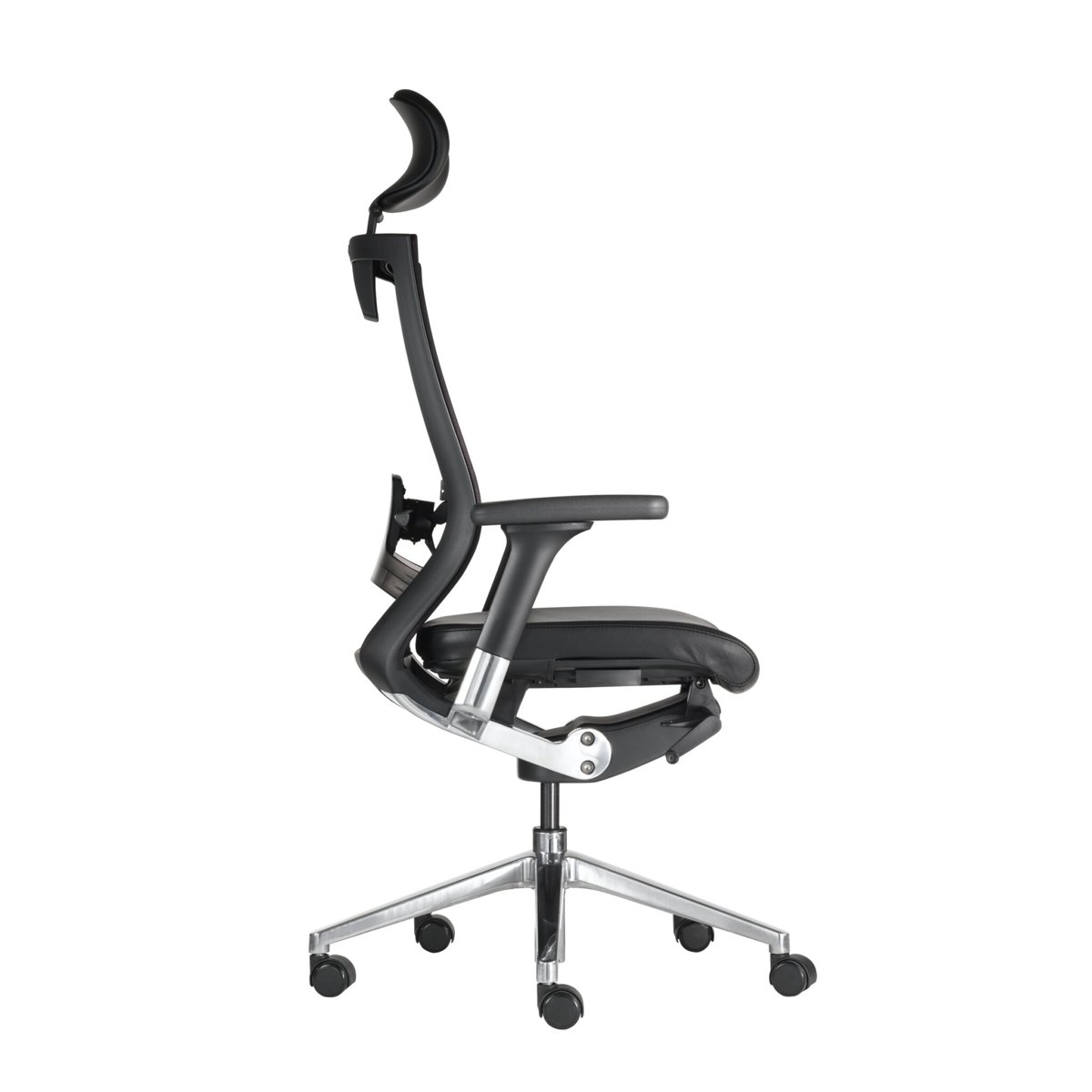 Versione EVO con poggiatesta in finta pelle nera regolabile in altezza e orientamento
